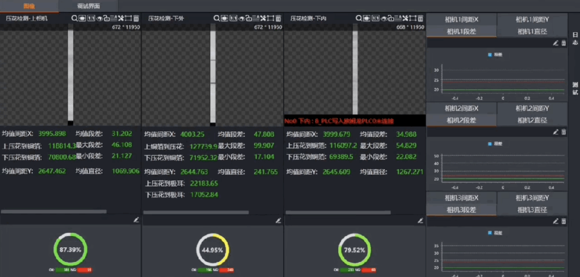 •全宽覆盖的线激光检测架构,可同步检测左中右三段压花区;