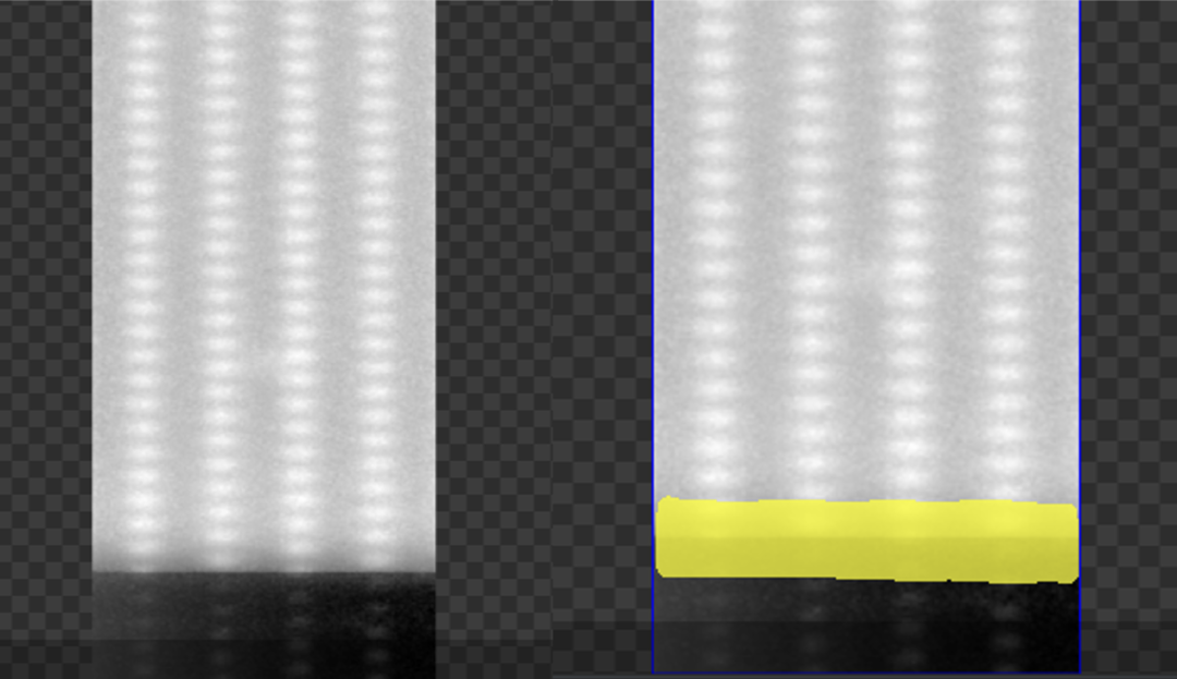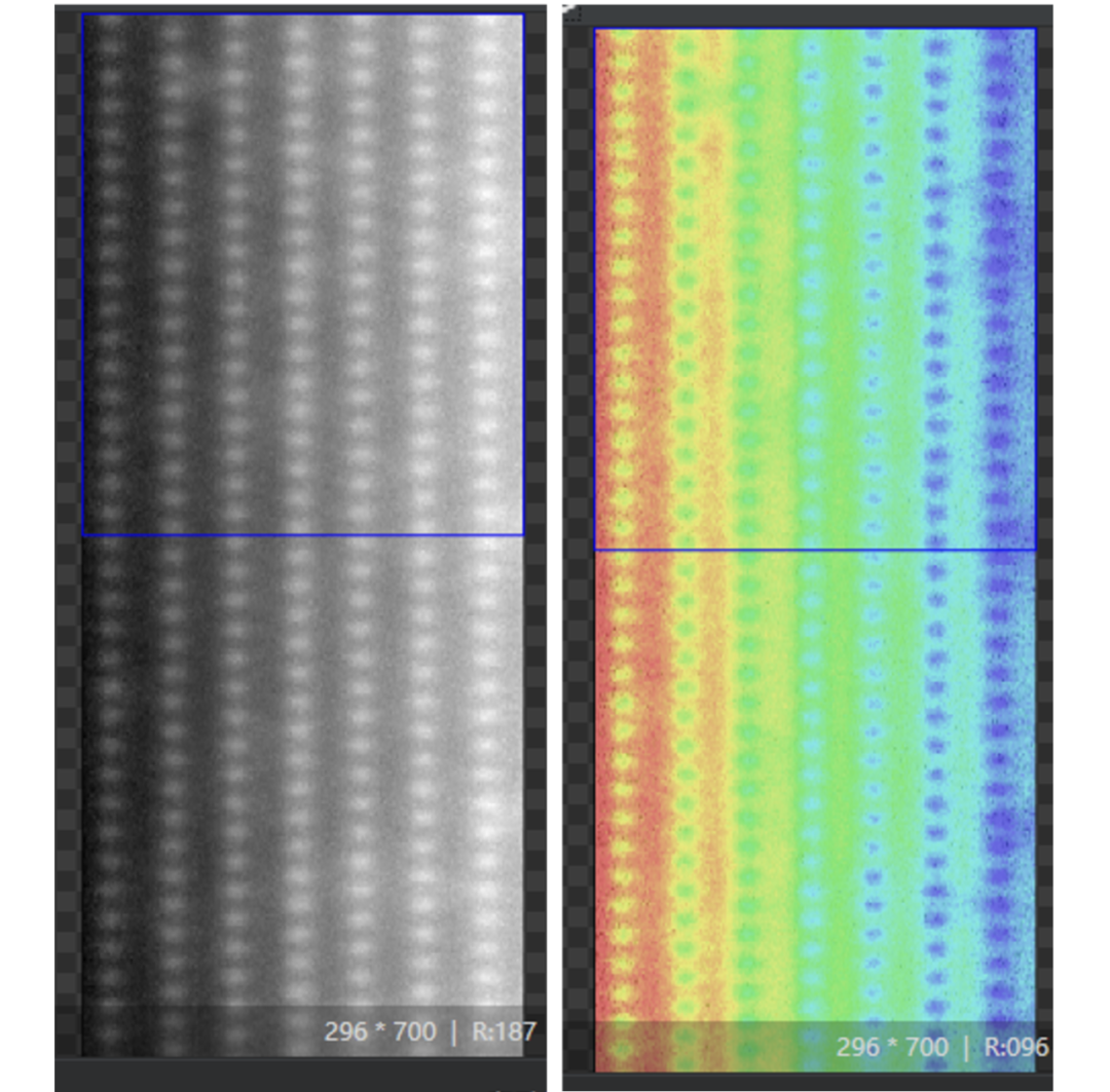 通过深度图与3D点云,结合传统算法与AI算法处理技术,实现压花深度和压花点间距测量,实现压花点破损、折痕等缺陷检测,漏检率=0%,过杀率≤0.5%,保障了压花质量。